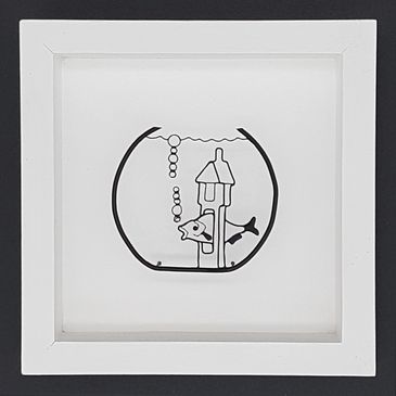 My latest collection of work includes wire pictures which are based on the simple and humorous things in everyday life and are often inspired by a phrase, saying or childhood memory.